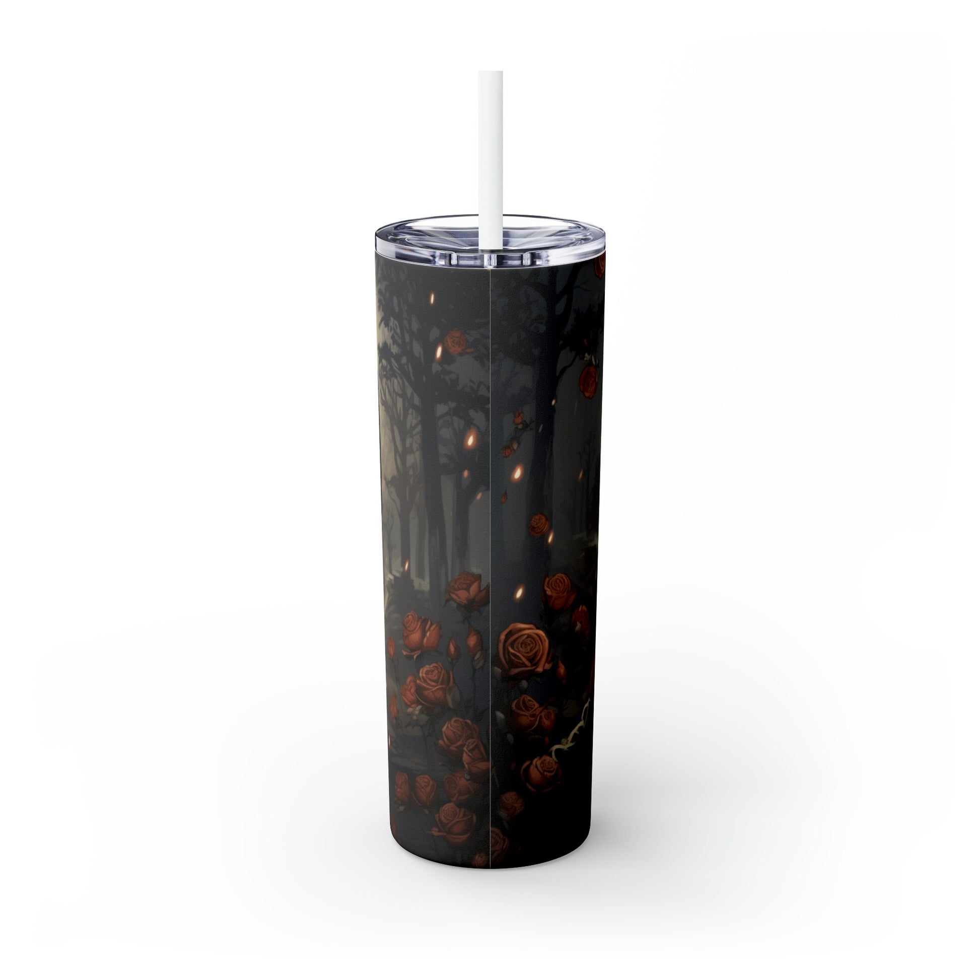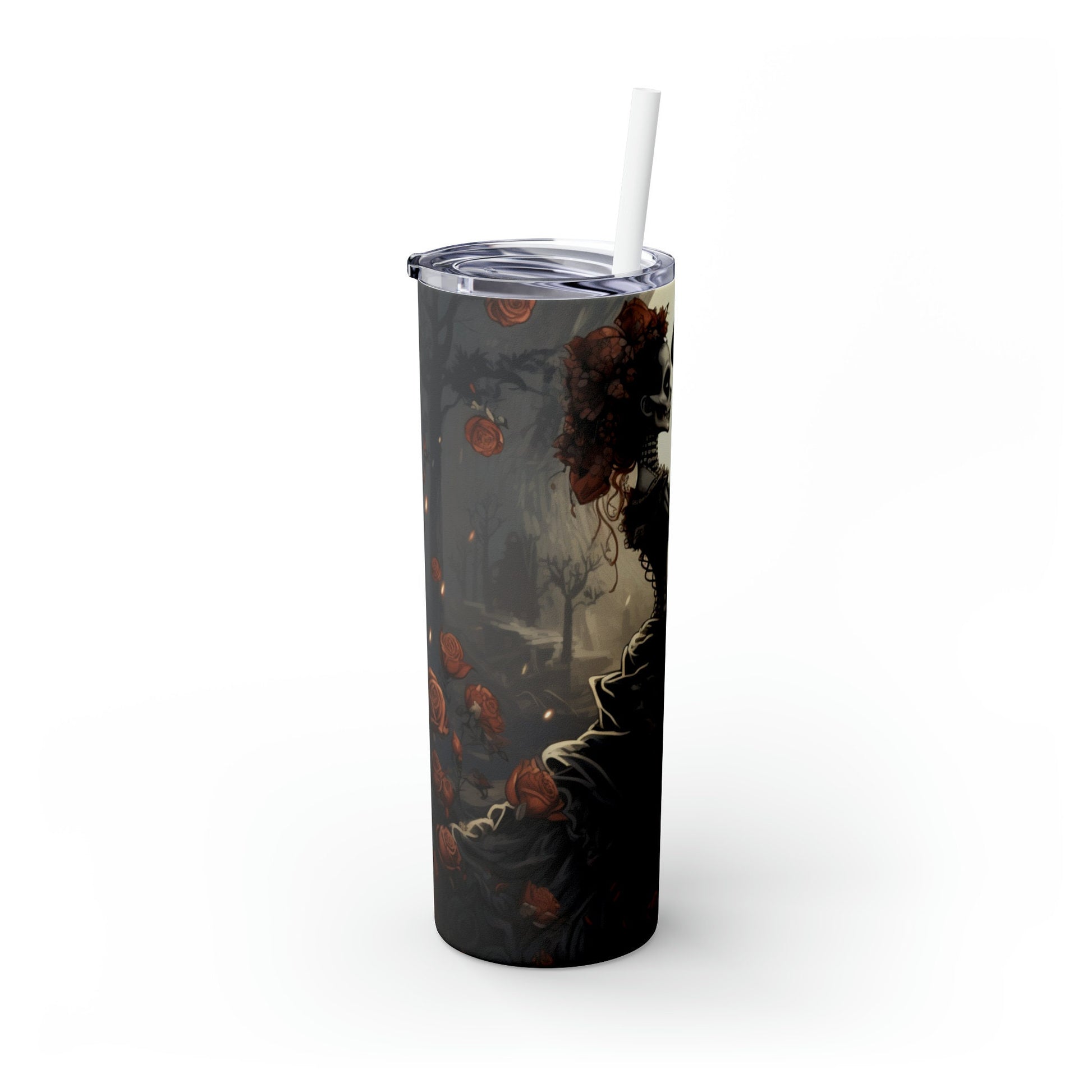 Vaso delgado artístico del Día de los Muertos con pajita de 20 oz, impresión artística tradicional del Día de los Muertos, taza de diseño para viaje y automóvil para todo uso