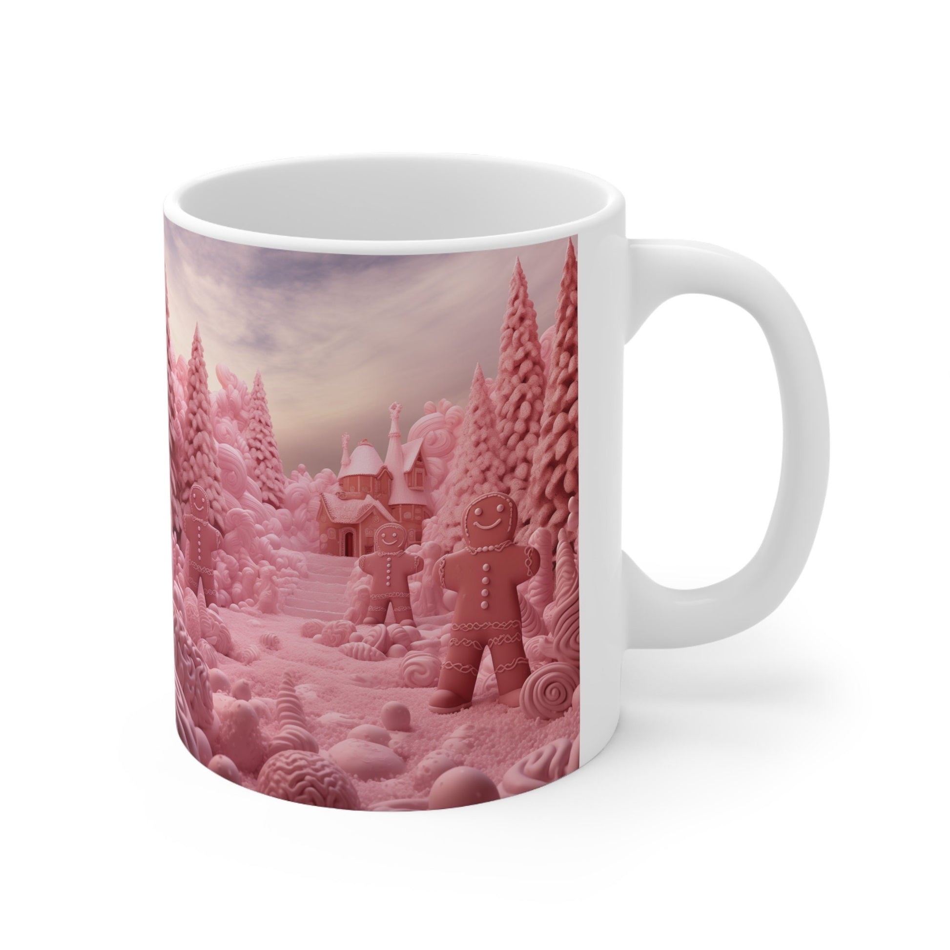 Taza de cerámica de 325 ml, taza navideña rosa, hombrecito de jengibre rosa, bonita en rosa, taza de café, tazas navideñas, regalo de Navidad