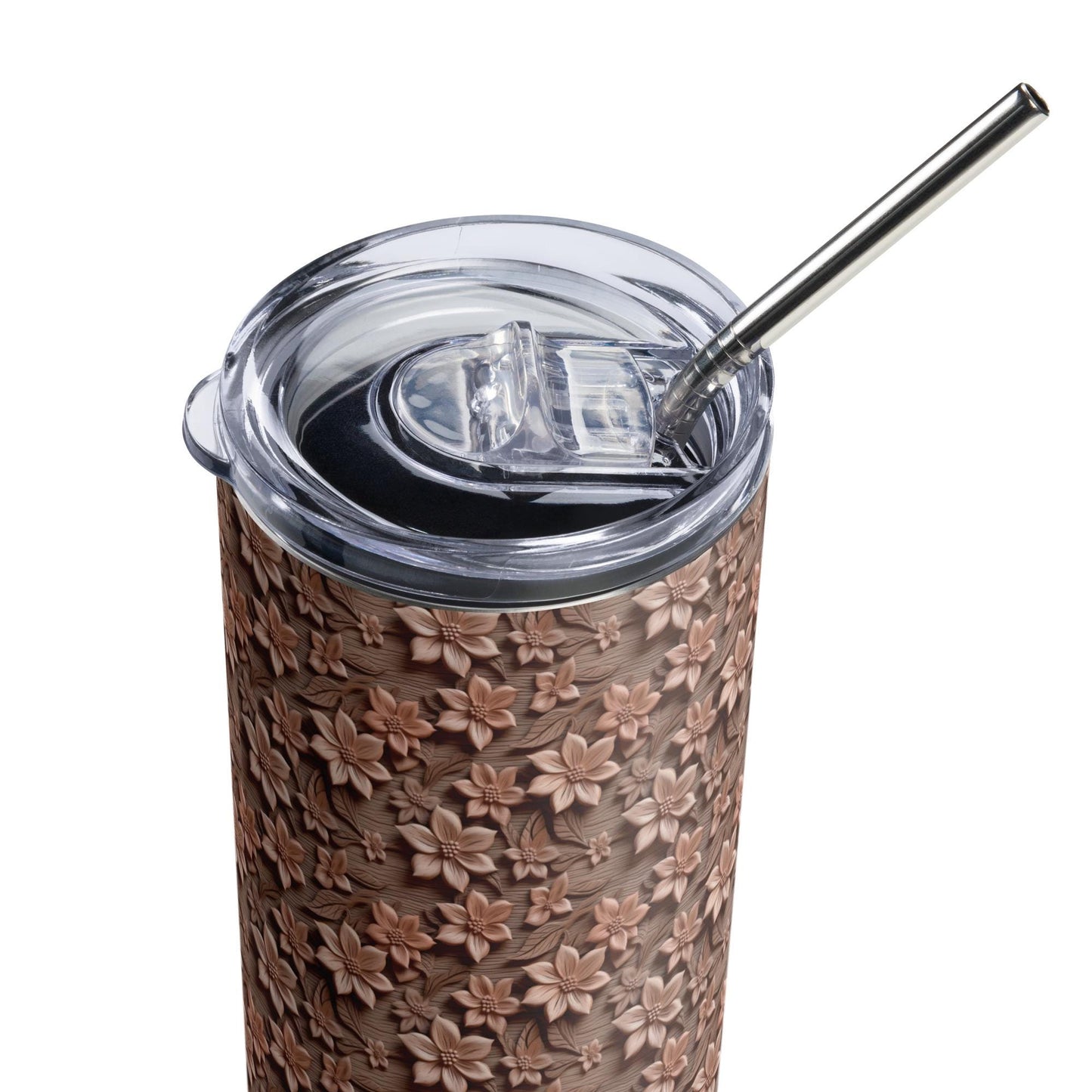 Elegante vaso de acero inoxidable con estampado floral | Taza de viaje única | Vaso térmico | Regalo perfecto para ella | Taza personalizada