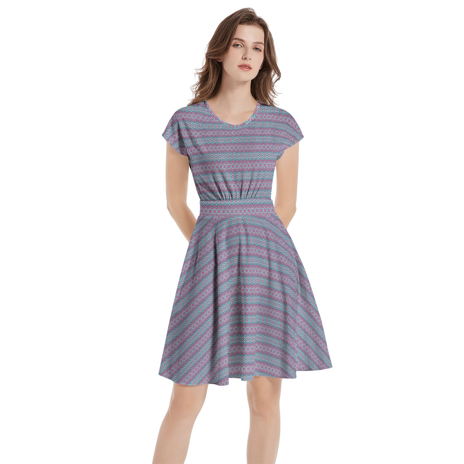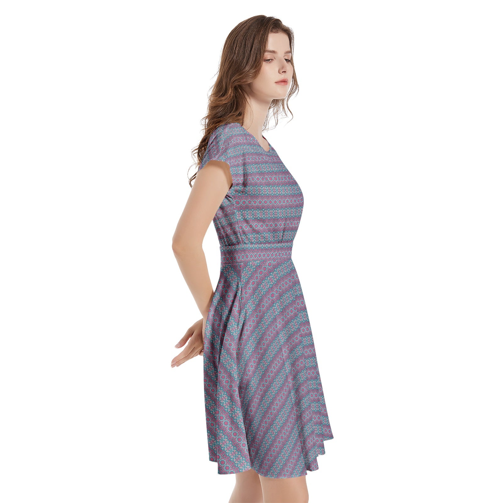 Indulge in elegance with our Womens Vibrant Blue Purple Short Sleeve Dress. This A-Line dress boasts a vibrant color combination and comfortable short sleeves, perfect for any casual occasion. The above the knee length adds a touch of flirtiness, making it a versatile addition to your wardrobe.