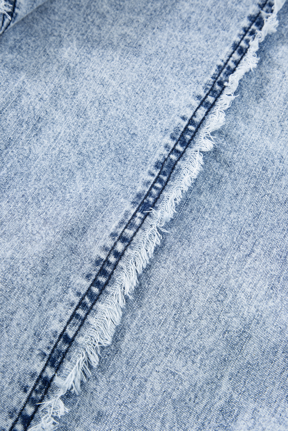 Beau Blue Light Wash Frayed Exposed Seam Wide Leg Denim Overall