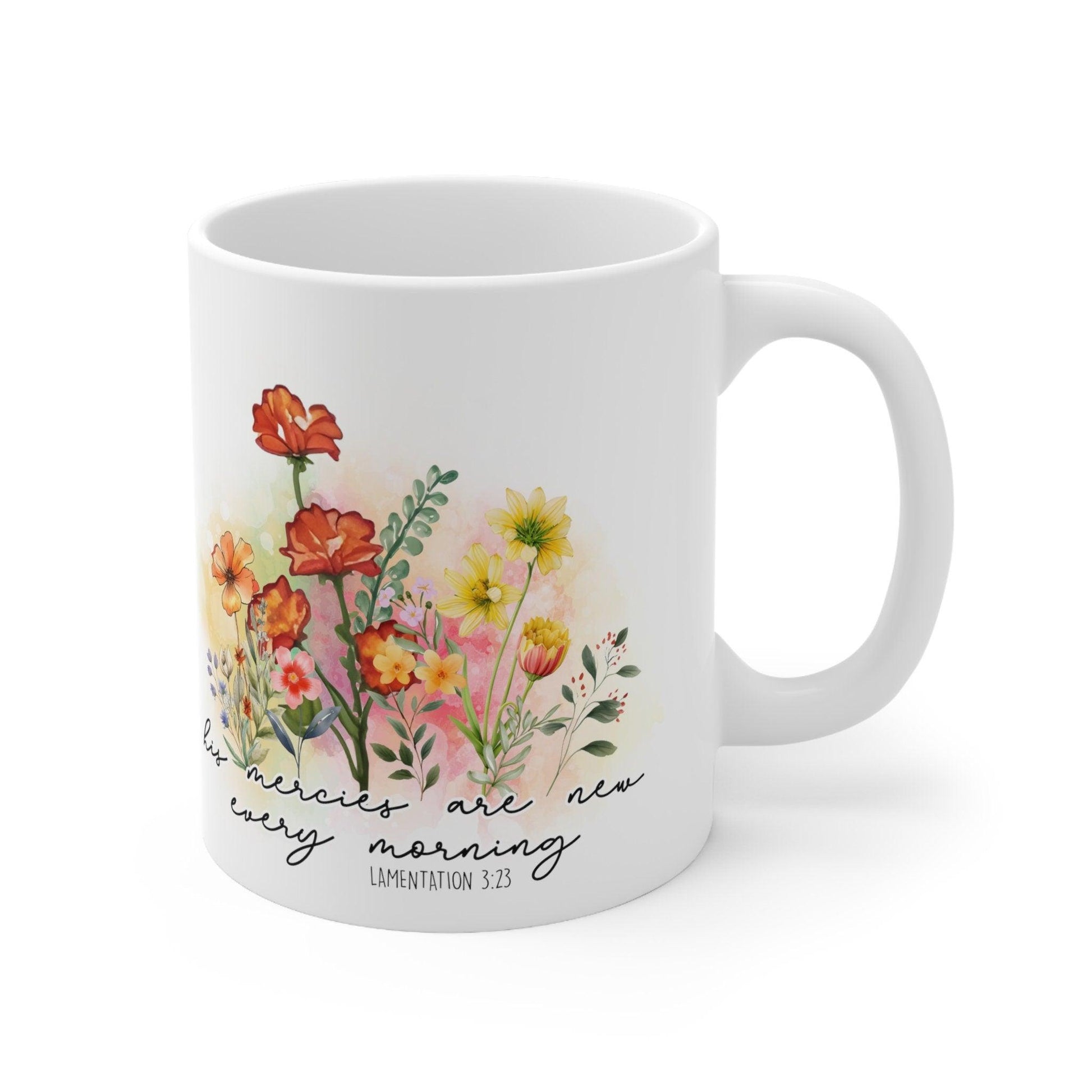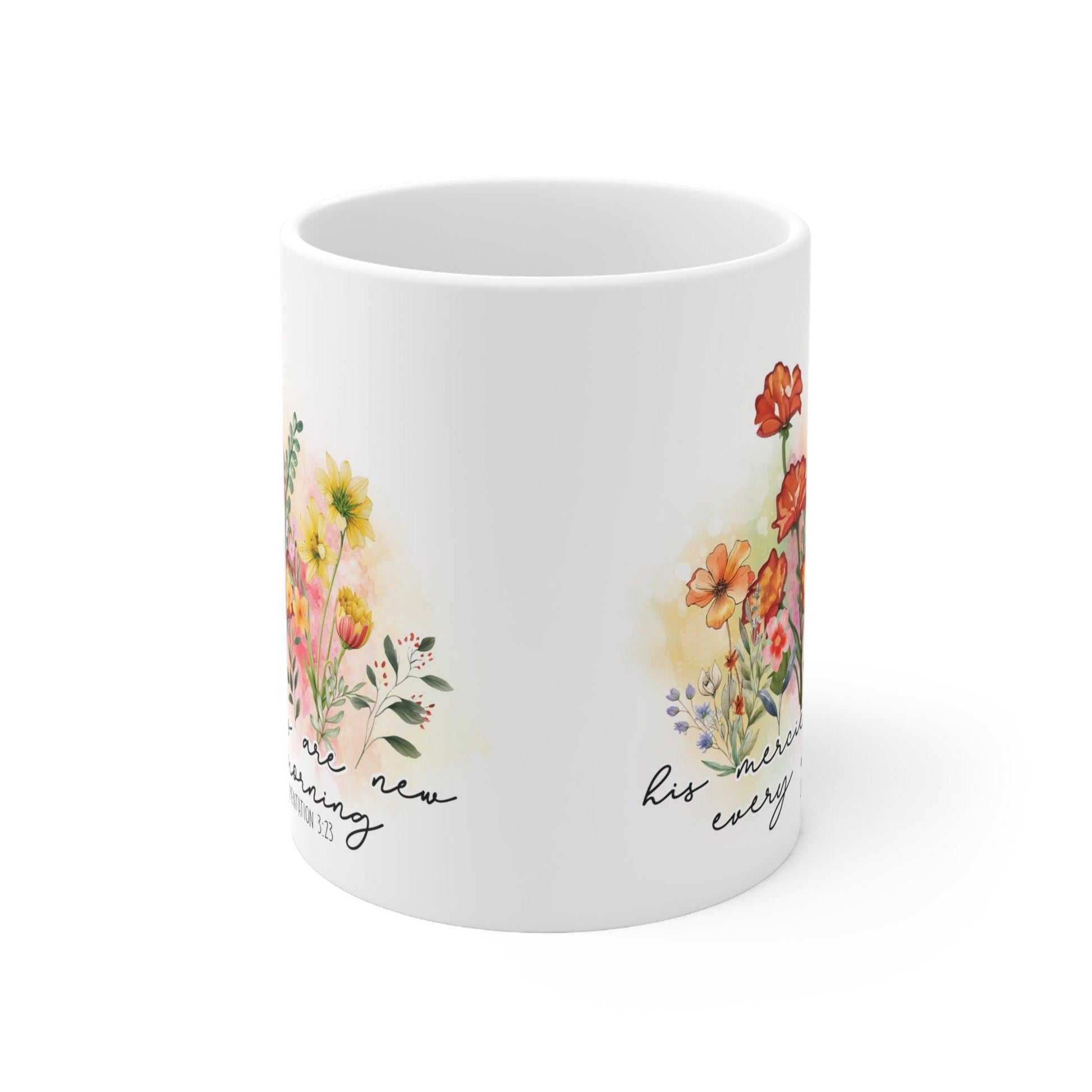 Ceramic Mug 11oz, Positive empowerment Jewish faith floral design coffee tea Bat Mitzvah gift