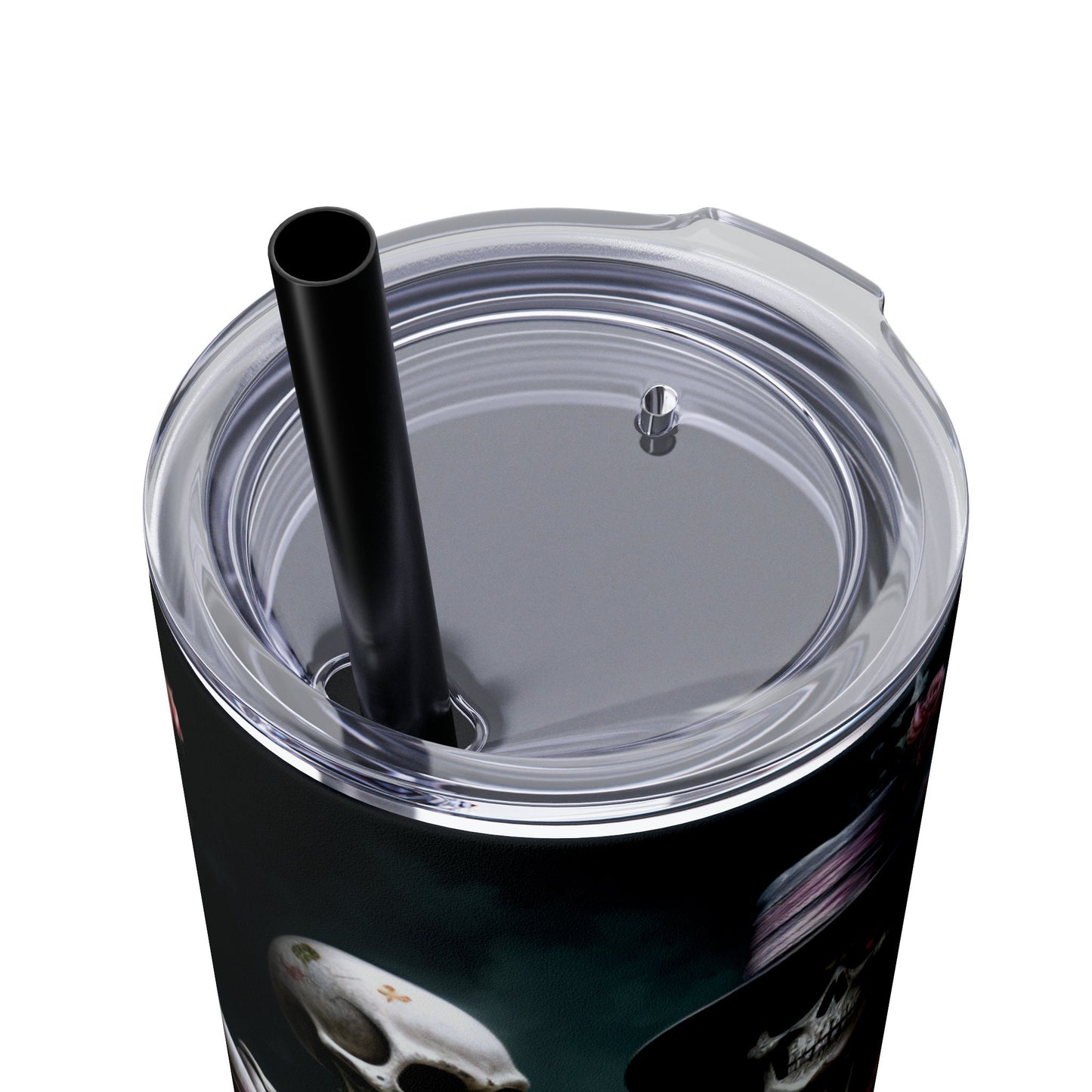 Day of the Dead 20oz Skinny Tumbler with Straw, Colorful Dia de Los Muertos Halloween Artistic Cup, Dead Mans Party Mug, Gift for Halloween