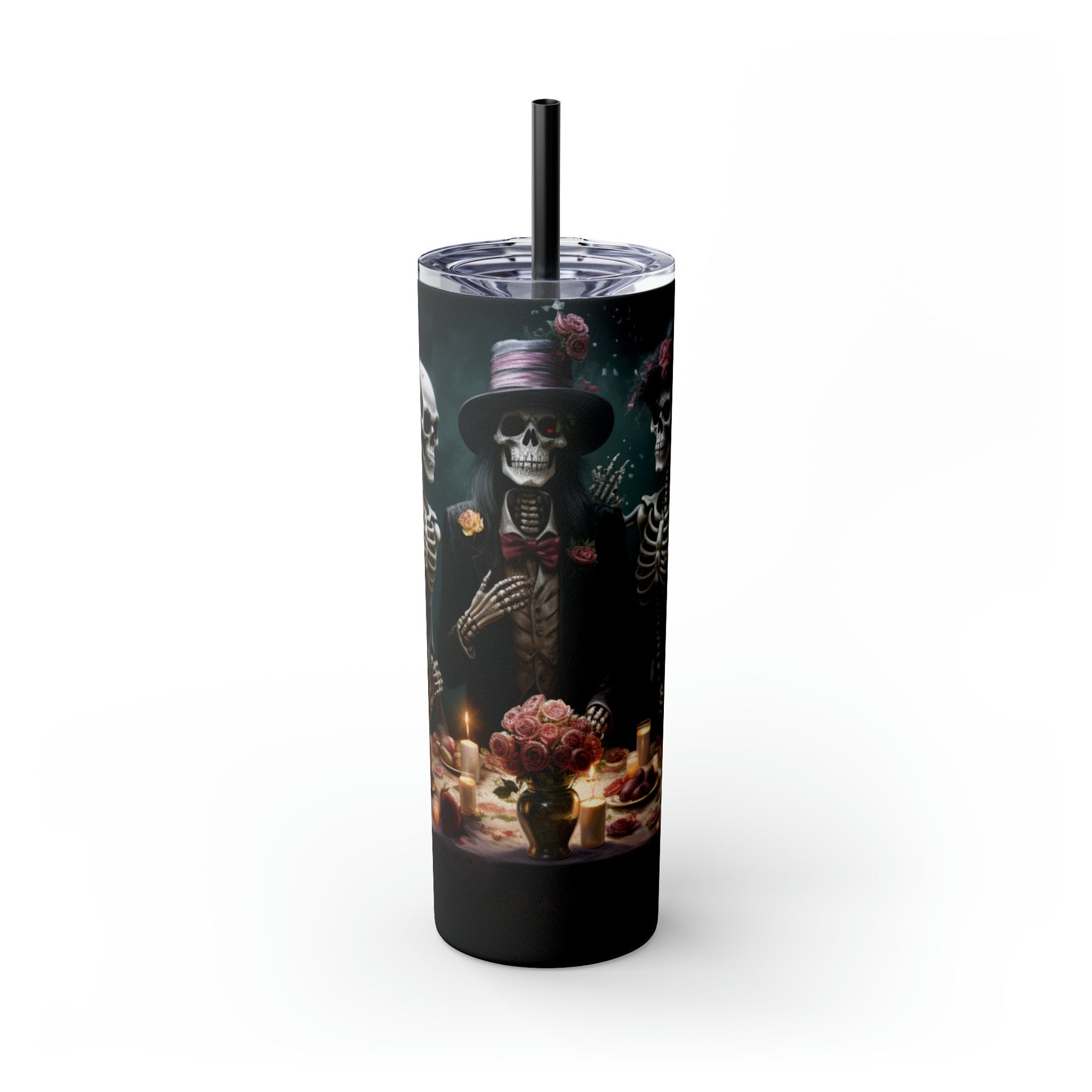 Day of the Dead 20oz Skinny Tumbler with Straw, Colorful Dia de Los Muertos Halloween Artistic Cup, Dead Mans Party Mug, Gift for Halloween