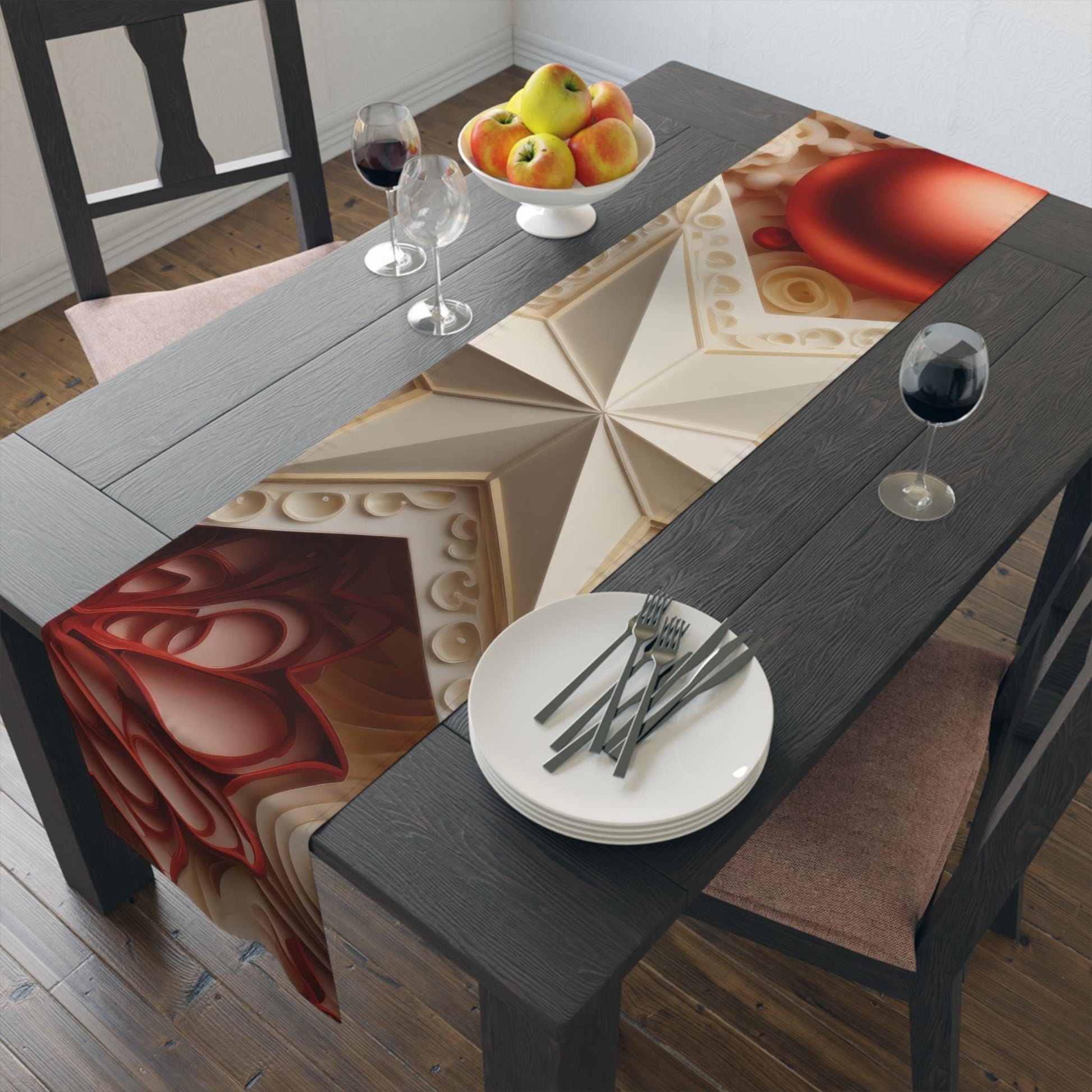 Elegant Holiday Table Runner, Festive Dining Decor, Cotton & Poly Runner, Christmas Table Decoration, Modern Centerpiece