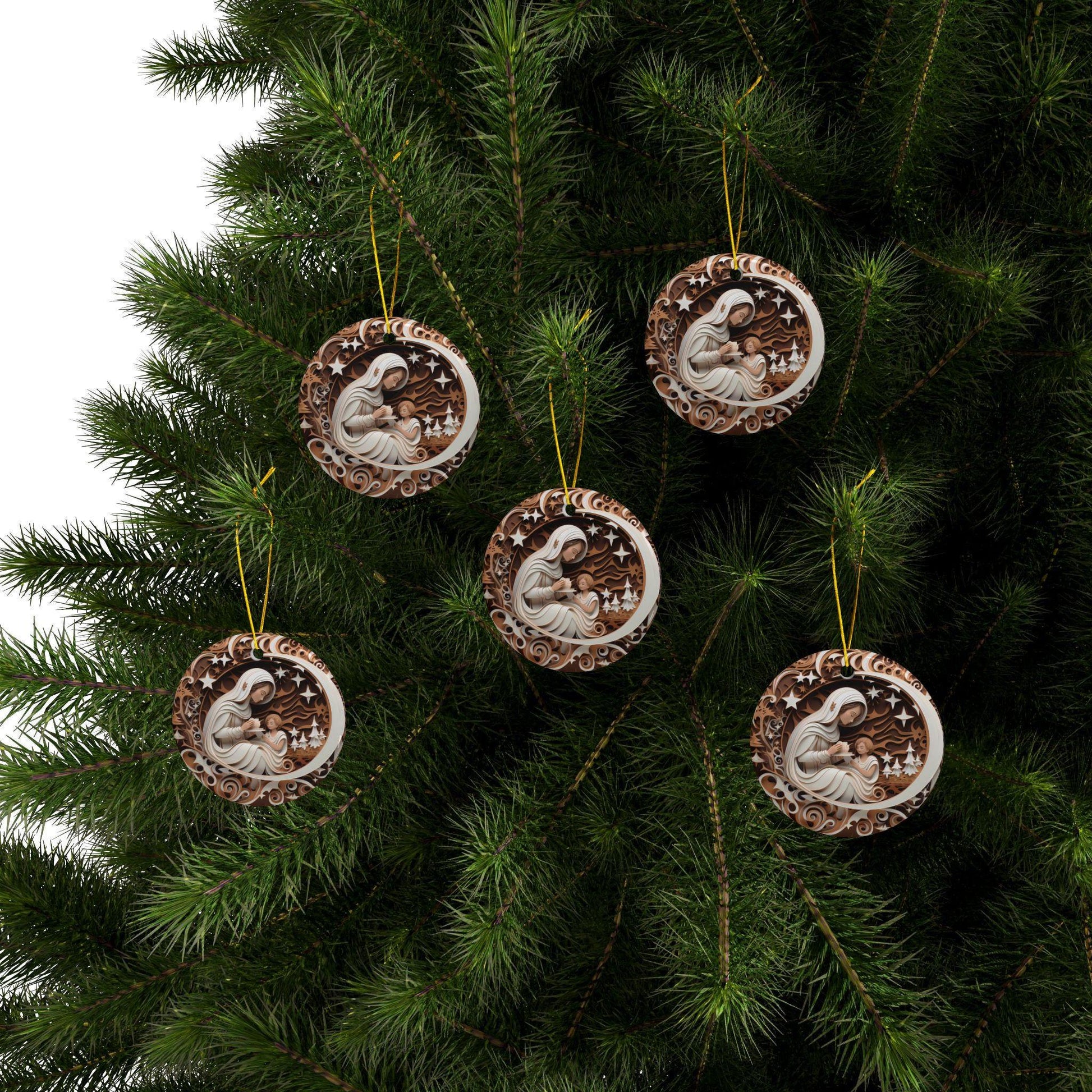 Handcrafted Ceramic Ornaments - 2-Sided Christmas Decor, Family Keepsake, Holiday Gift, Nativity Design