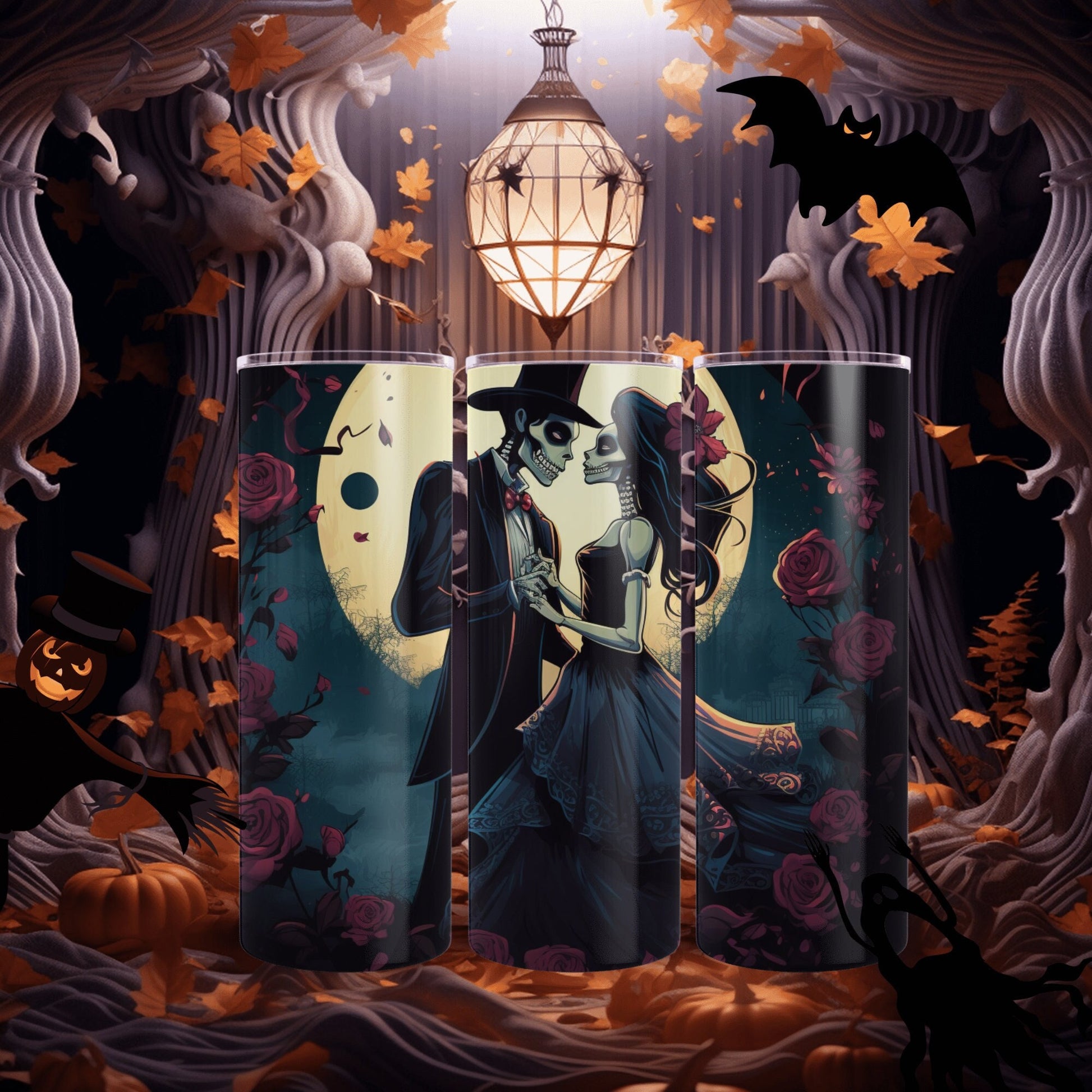 Skinny Tumbler with Straw, 20oz, Day of the dead Couple, Dia de Los Muertos, Halloween tumbler, Artistic Tumbler, Colorful Tumbler