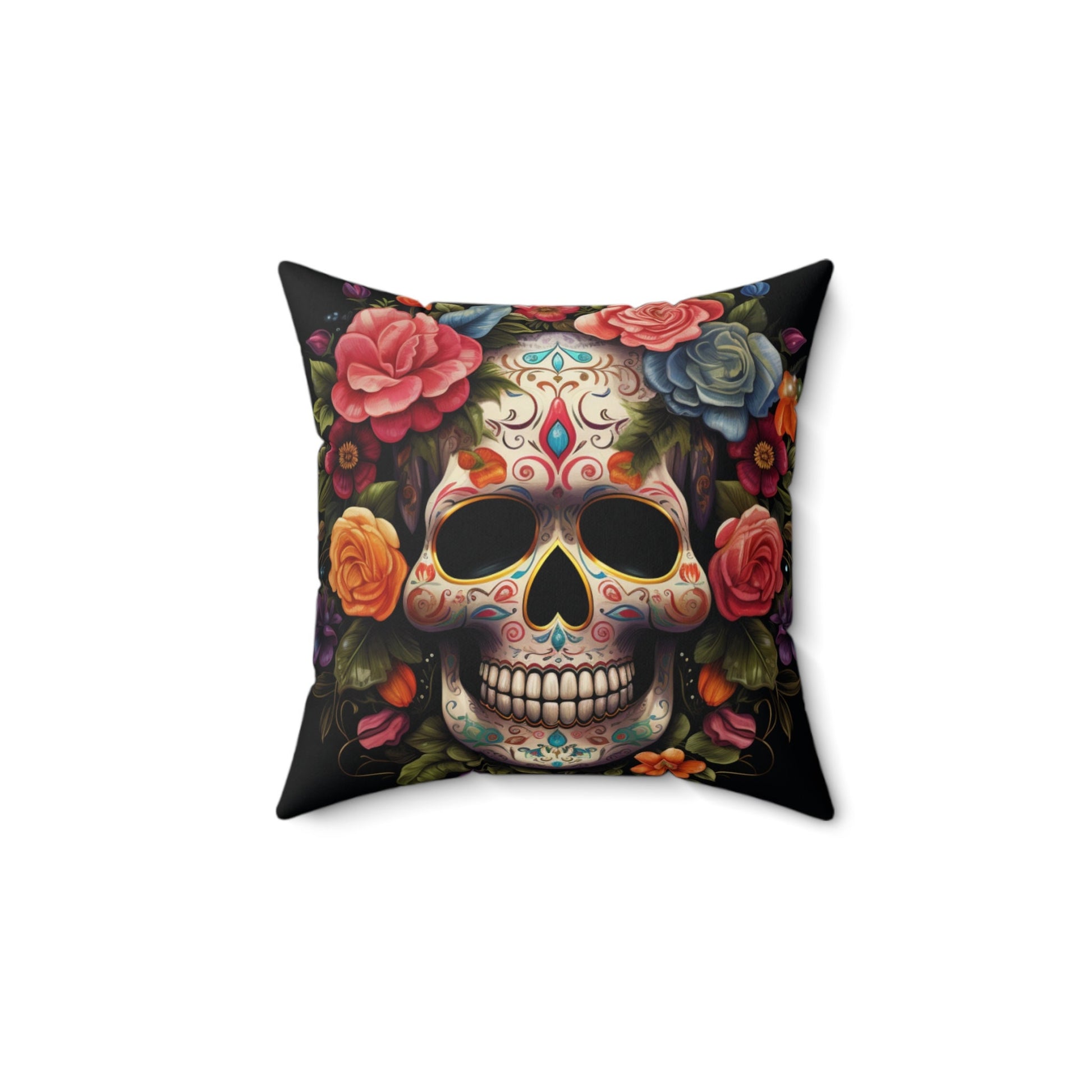 Square Pillow, Day of the dead Dia de Los Muertos colorful floral Halloween throw bedroom couch pillow house warming gift