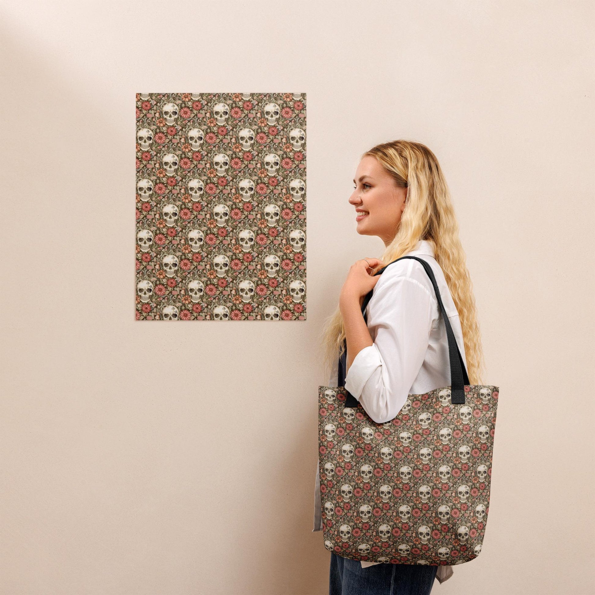 Sugar Skull Tote bag designer fashion pattern all over print computer Ipad office work travel gym grocery shopping all purpose theme bag