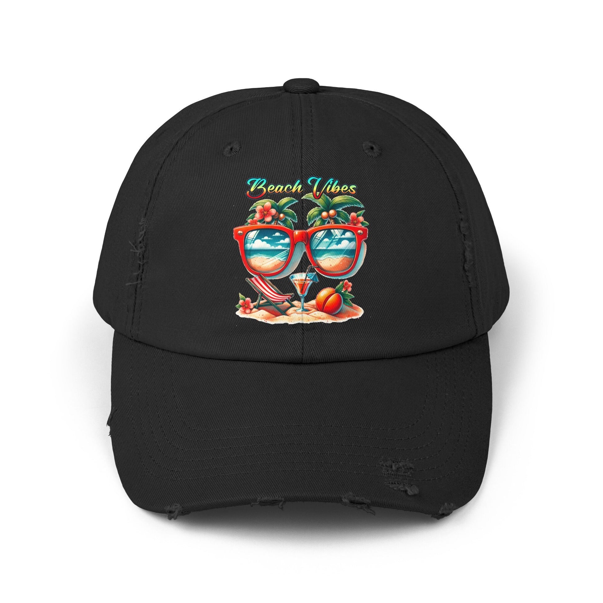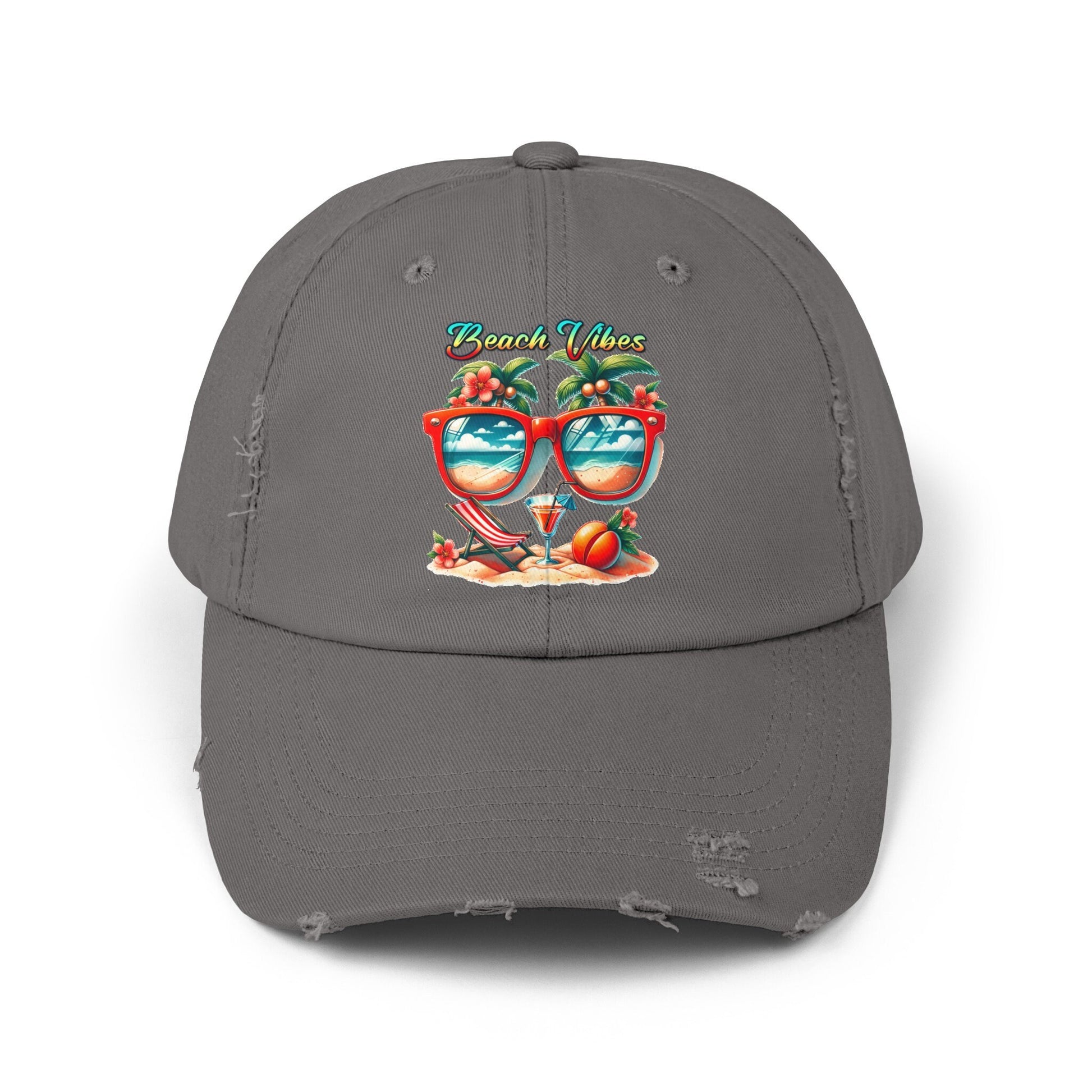 Unisex Distressed Cap, Cool Beach Vibes Casual Summer Laid Back Head cap, Relaxing travel wear, Novelty everyday Golfing hat