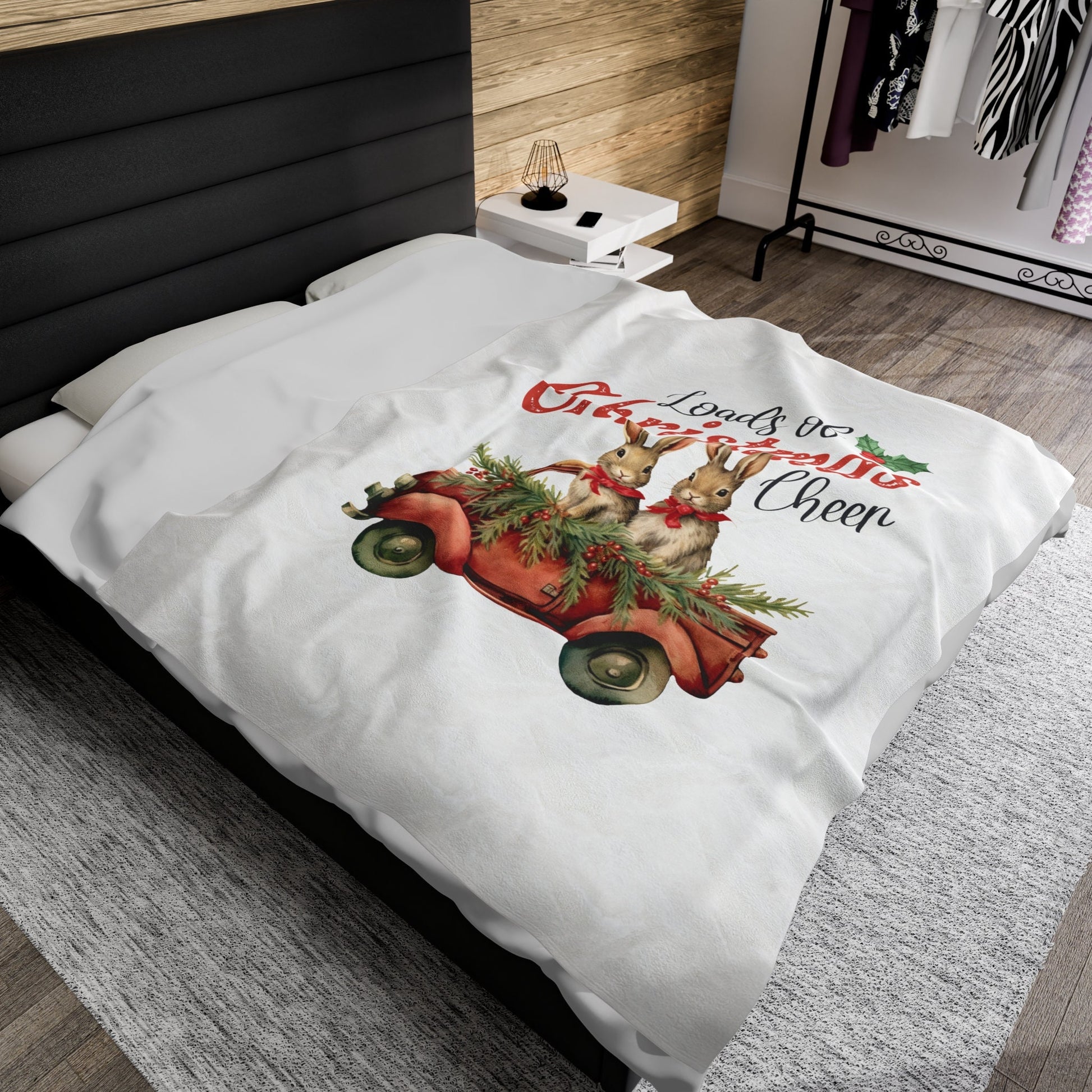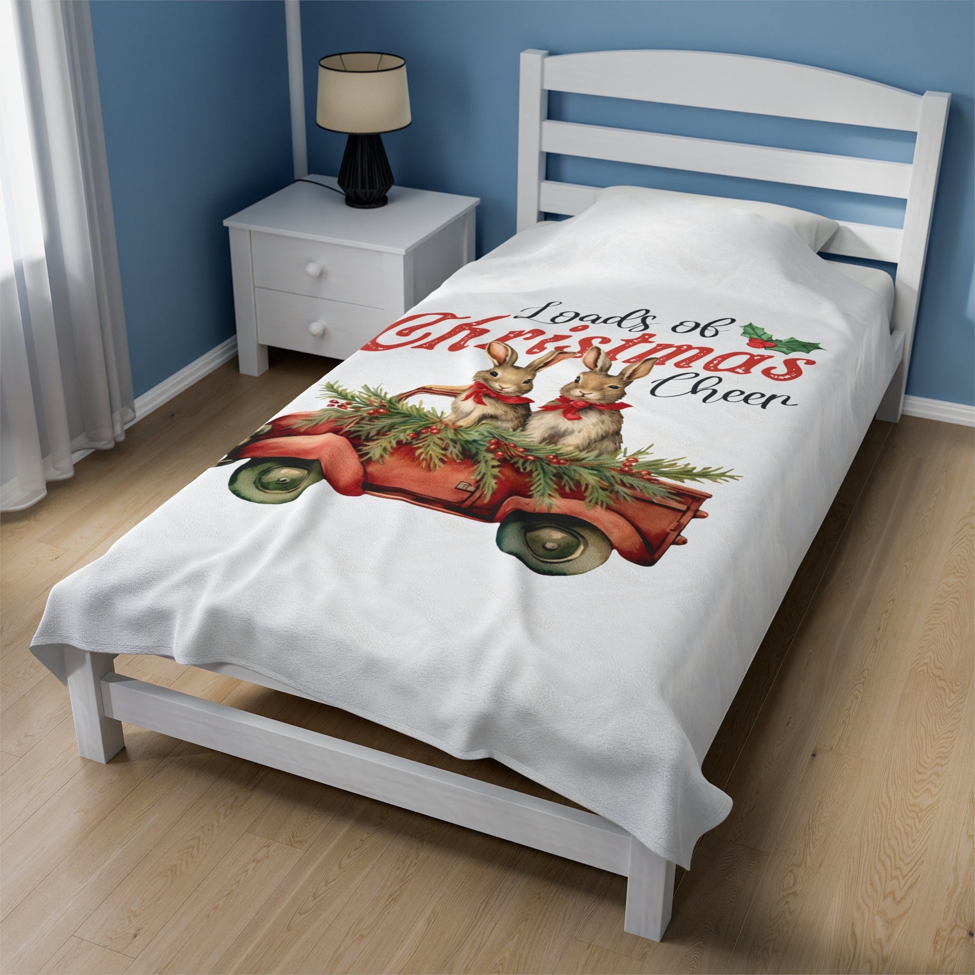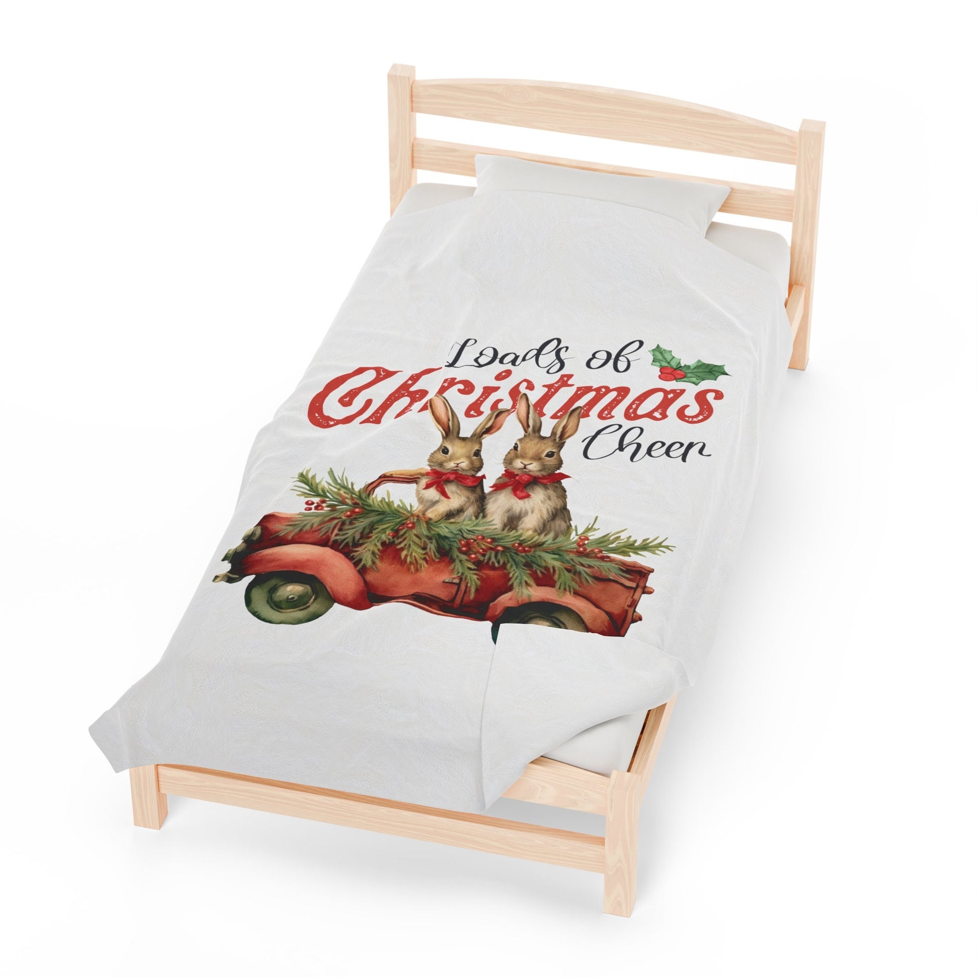 Velveteen Plush Blanket, Country Xmas farm house style decor warm holiday bunny design couch bed chair fireplace winter throw