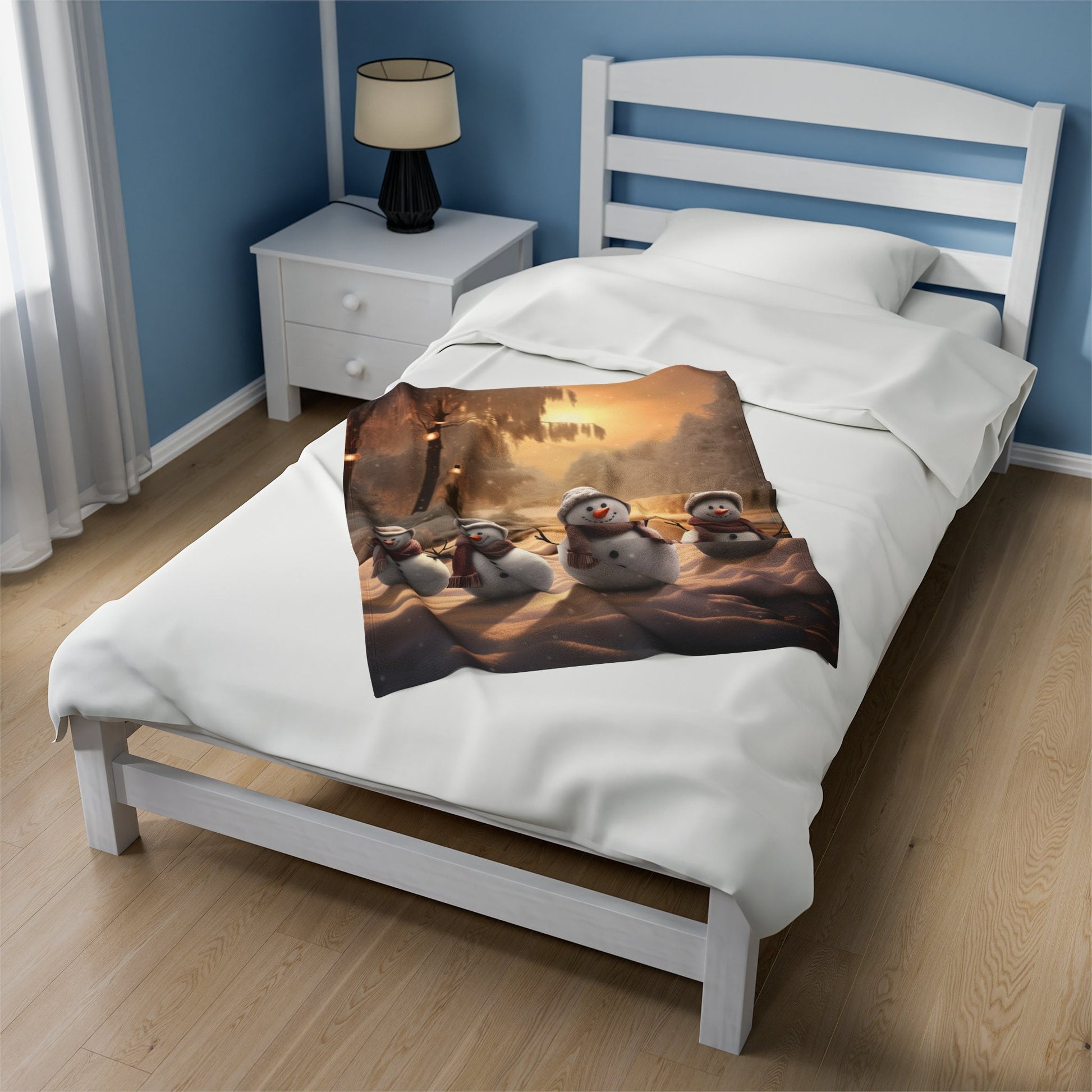 Velveteen Plush Blanket, Holiday Snowmen Designs, Xmas Holiday Bedspread, Designer Comfort, Novelty spread, Bed Designs, Xmas Bedroom